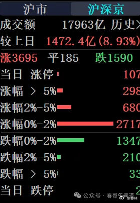 补涨型的是北证50、科创50、券商、新能源、医药和食品饮料这些方向,后面也会有轮动表现的机会,牛市行情下,从来不缺上涨的”理由“和”借口“。